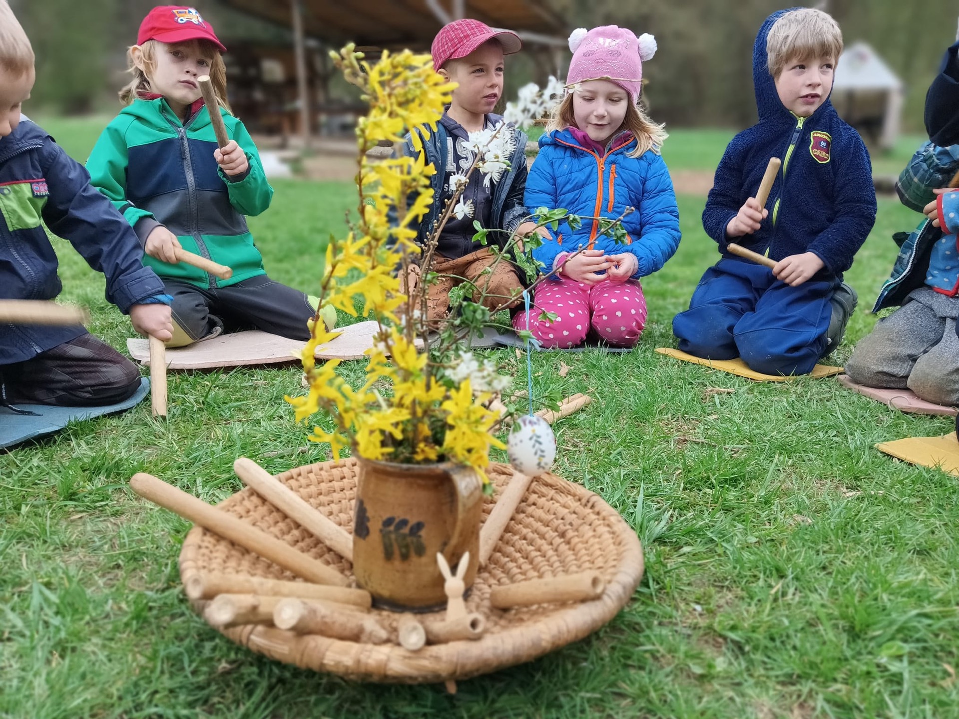 Dopoledne trávíme většinou na výpravách do okolních lesů a luk, po obědě a klidu pak děti tvoří a objevují svět přímo na našem pozemku.